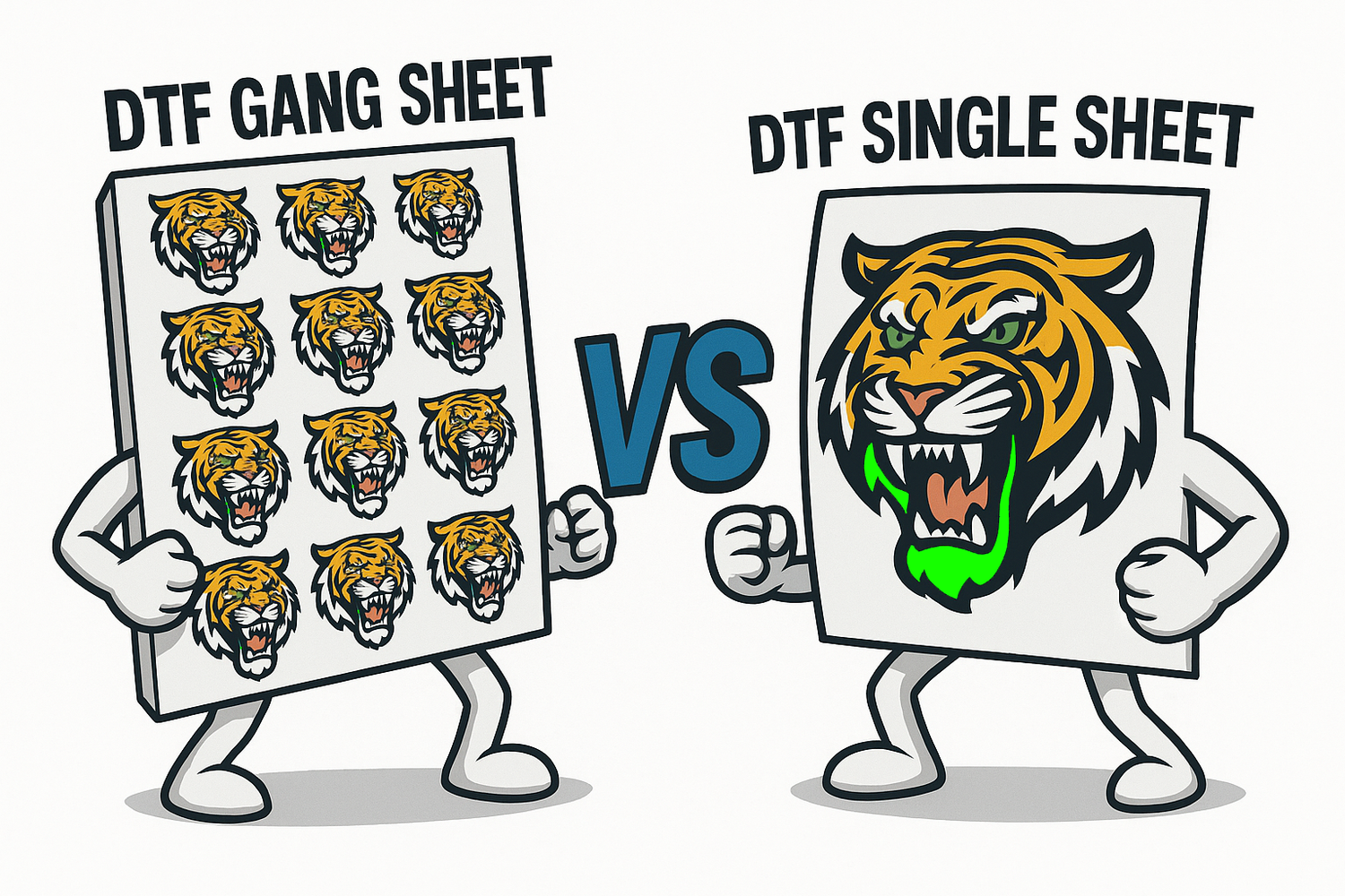 Gang sheets are the smartest way to get more for your money. Instead of buying one sheet per design, you can fill one big sheet with multiple designs — logos, names, graphics — all in one print run.